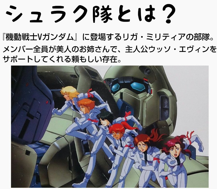 シュラク隊って富野の初期案だとアマゾネス戦隊の予定だったけどダサくて偉い人に変更食らったらしいな